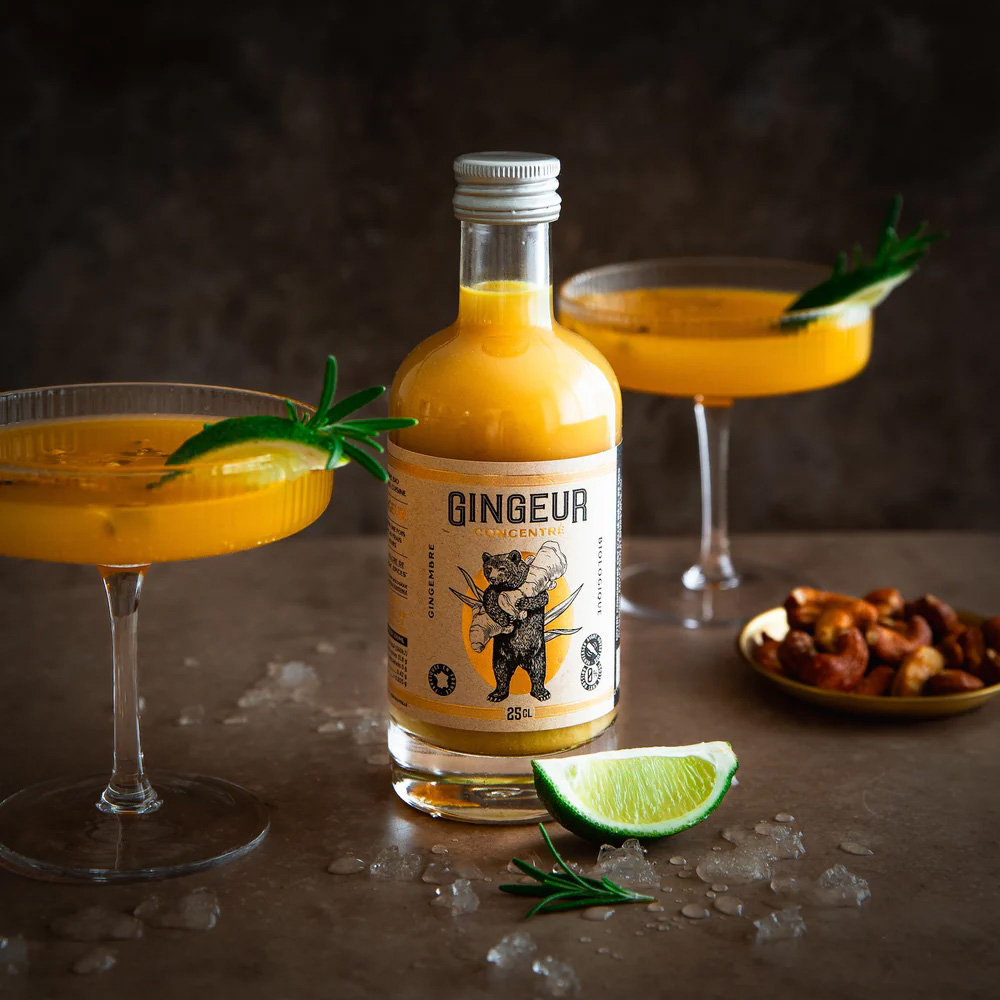 Avec GINGEUR, Meneau explore le gingembre dans toute sa puissance : ginger beer et concentrés bio, fermentés naturellement, peu sucrés et ultra aromatiques. Une alternative premium qui apporte du caractère à une carte boissons.