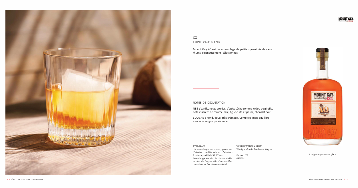 Retrouvez ci-dessous toute la gamme commercialisée « MOUNT GAY » par le fournisseur Rémy Cointreau.